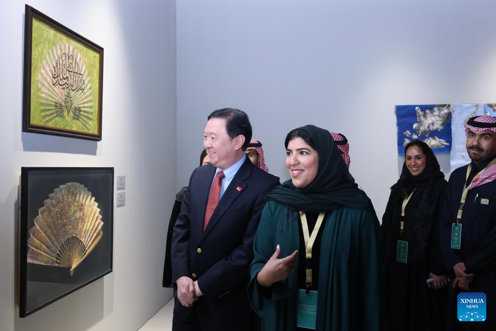 وفي مساء أمس (الخميس)، قامت وكيل وزارة الثقافة السعودية مي الرشيد، وسفير جمهورية الصين الشعبية لدى المملكة تشانغ هوا، بجولة في أجنحة المهرجان، وتبادلا الحديث مع الفنانين والمشاركين من الجانبين.